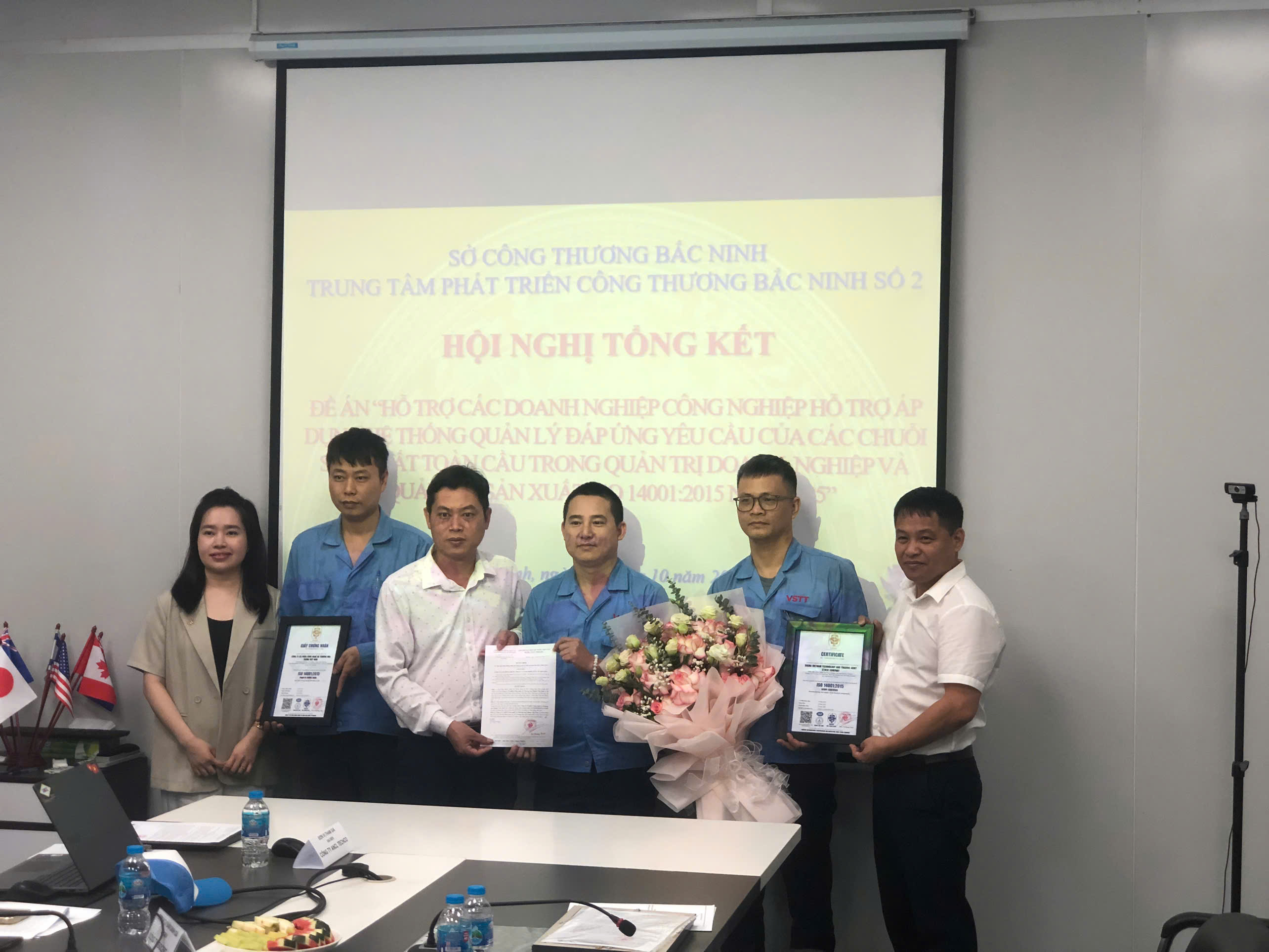 Đề án "Hỗ trợ các doanh nghiệp công nghiệp hỗ trợ áp dụng hệ thống quản lý đáp ứng yêu cầu của các chuỗi sản xuất toàn cầu trong quản trị doanh nghiệp và quản trị sản xuất ISO 14001:2015" thuộc chương trình Phát triển công nghiệp hỗ trợ tỉnh Bắc Ninh năm 2025 do Trung tâm Phát triển công thương Bắc Ninh số 2 chủ trì hỗ trợ cho 03 doanh nghiệp bao gồm: Công ty TNHH Ancl Techco; Công ty CP Công nghệ và Thương mại Sigma Việt Nam; Công ty TNHH Cơ khí Seiki Việt Nam. Đề án tập trung đào tạo, hướng dẫn doanh nghiệp xây dựng hệ thống quản lý môi trường theo tiêu chuẩn ISO 14001: 2015 và Đánh giá chứng nhận hệ thống phù hợp tiêu chuẩn ISO 14001: 2015 tại 3 doanh nghiệp tham gia.